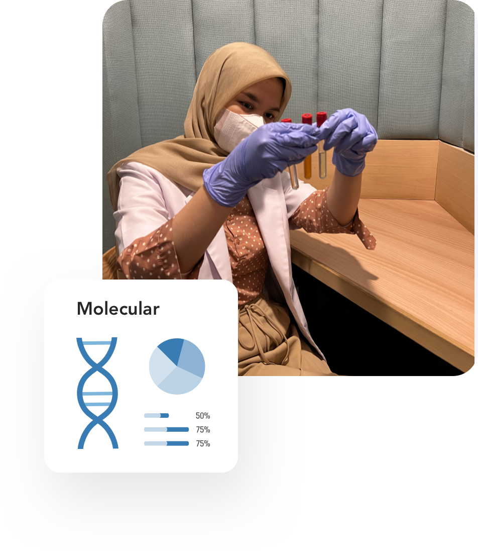 Instrumen, kit, dan bahan habis pakai yang menyesuaikan kebutuhan riset atau pelayanan molekuler. Mempermudah (peneliti) dari konsultasi kebutuhan, pemesanan, hingga barang diterima.